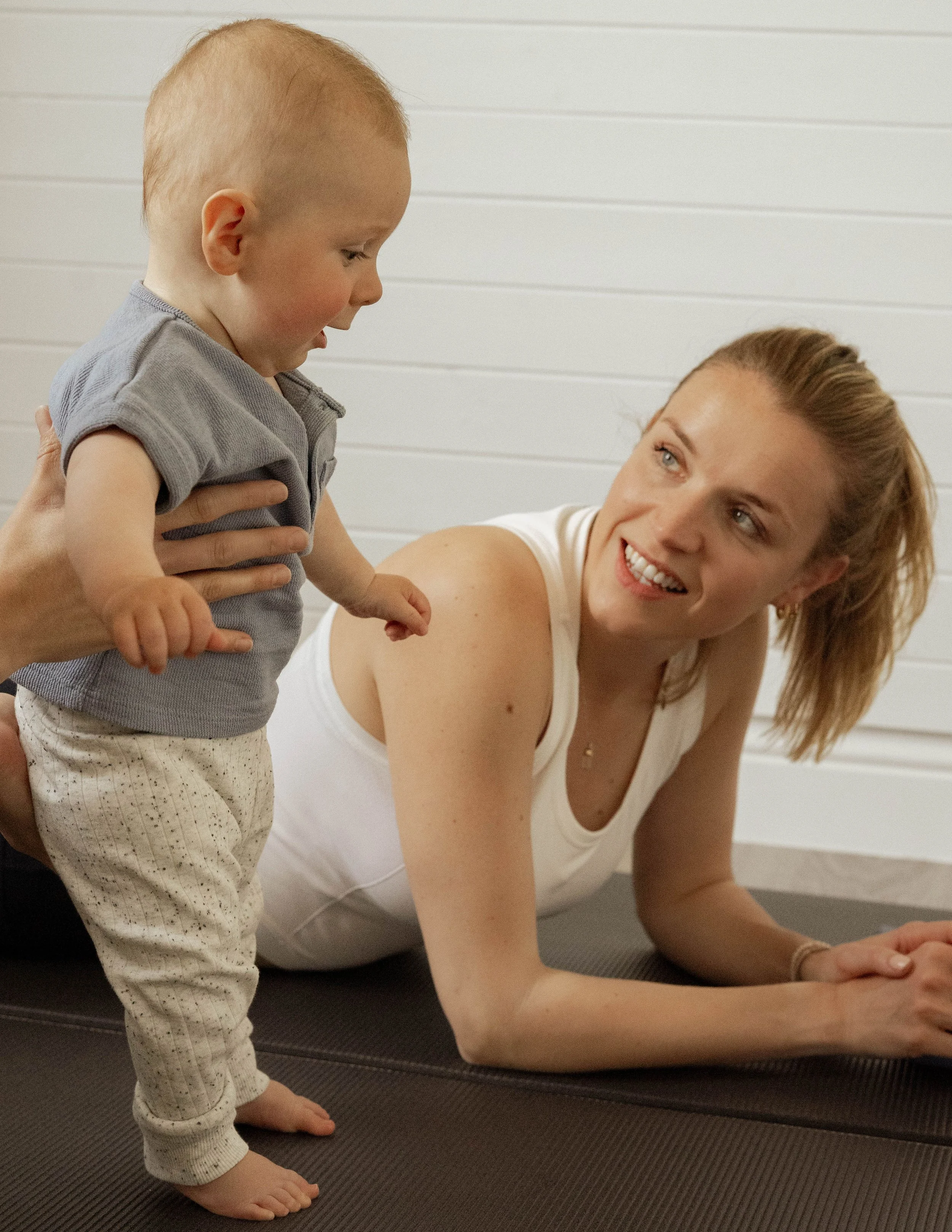You can usually begin postnatal Pilates once you’ve had clearance from your GP or midwife (usually around 6 weeks postpartum). But there’s no rush, come when you’re ready.